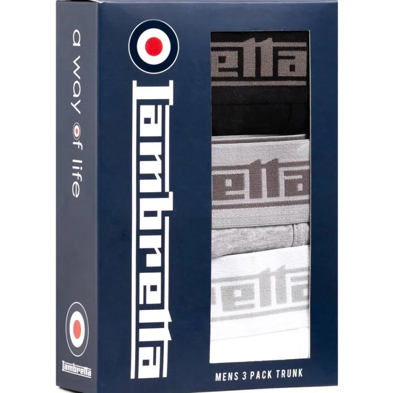 Hombre Lambretta Multipacks|Ropa Interior^Retro Hombre Calzoncillos bóxer Pack de 3 SS8204-NEGRO/GRIS/BLANCO