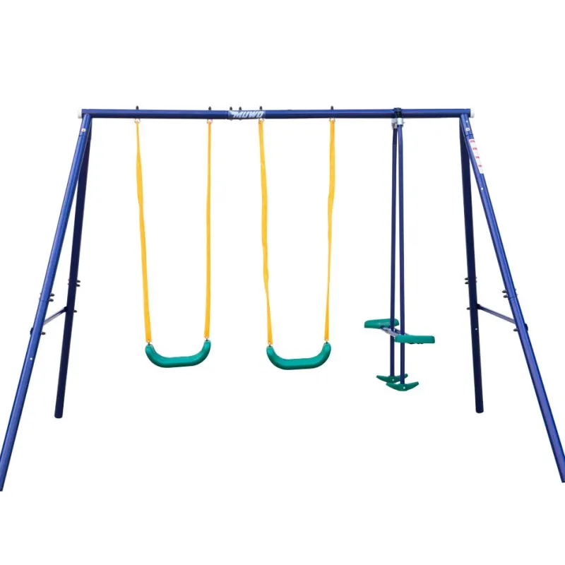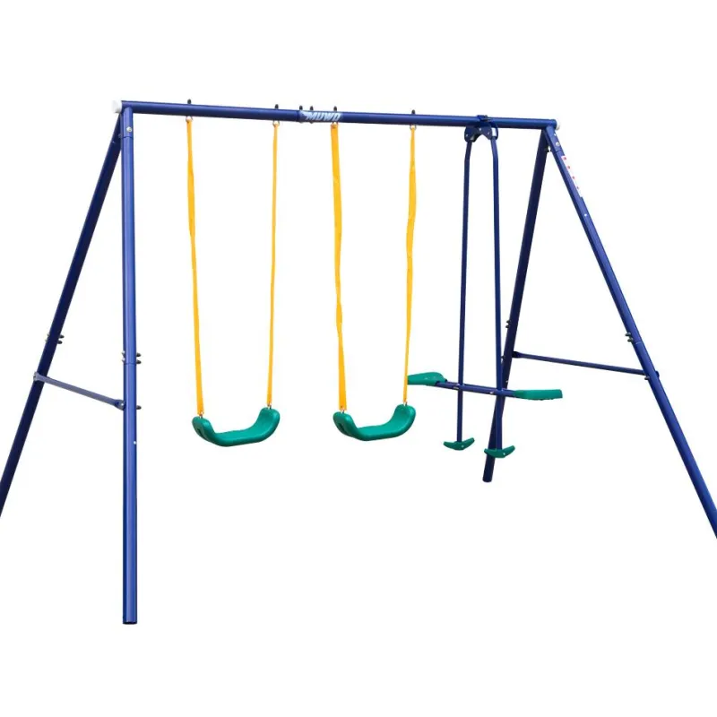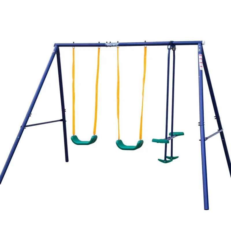 - Incluido en la entrega: 2x columpios individuales, 1x balancín, 1x estructura, 4x anclajes al suelo y 1x instrucciones de montaje