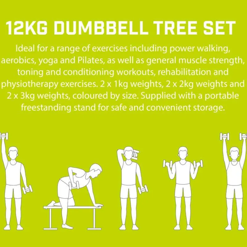 - 7 piezas Conjunto consta de un soporte para mancuernas, 2 mancuernas de 3 kg, 2 de 2 kg y 2 de 1 kg