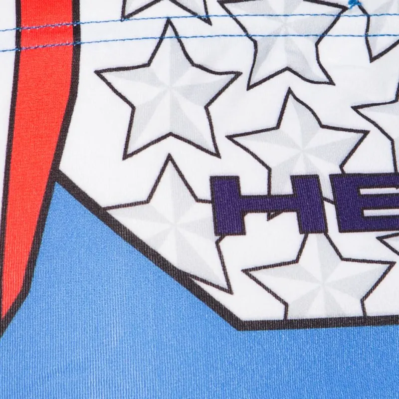 - Patrón de estrellas en los costados de los pantalones y en la espalda debajo del pretina