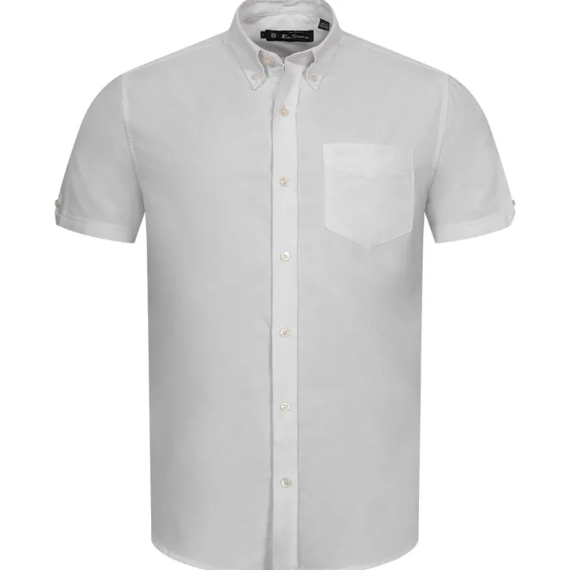 BEN SHERMAN Oxford Hombre Camisa de manga corta 1013388-BLANCO