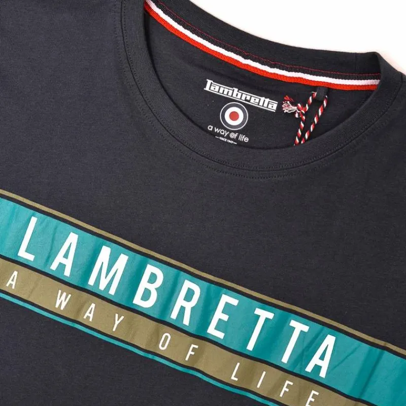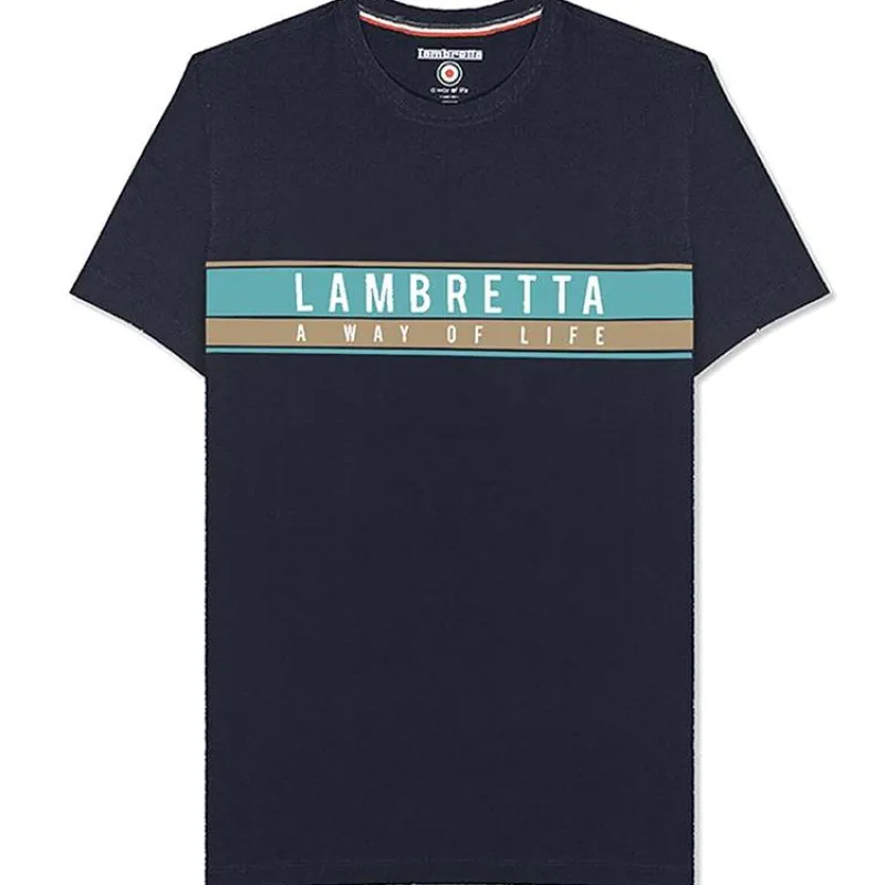 Hombre Lambretta Camisetas^Chest Stripe Hombre Camiseta SS0157-NVY