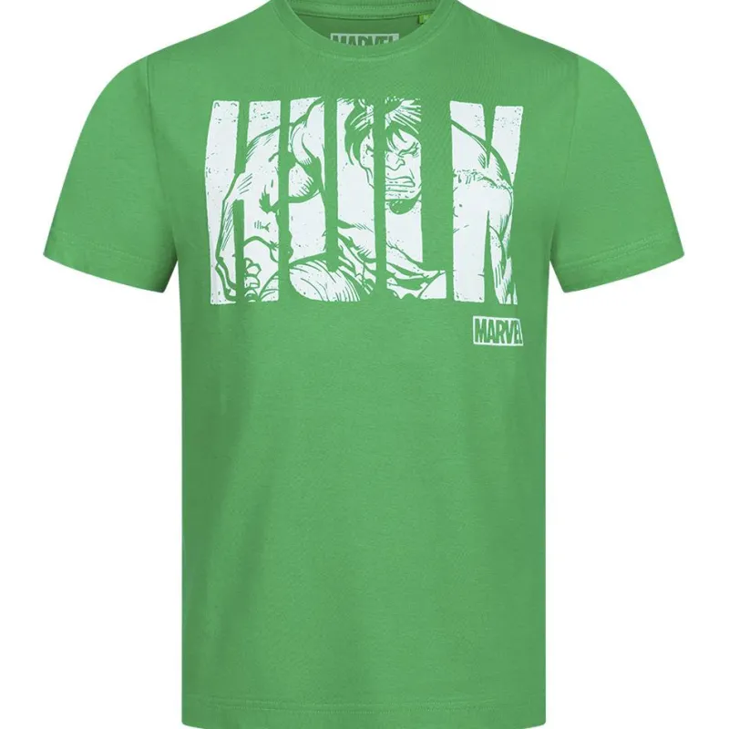 Hombre Lizenz Héroes De La Infancia|Camisetas^HULK Text MARVEL Hombre Camiseta FBMTS304GRN