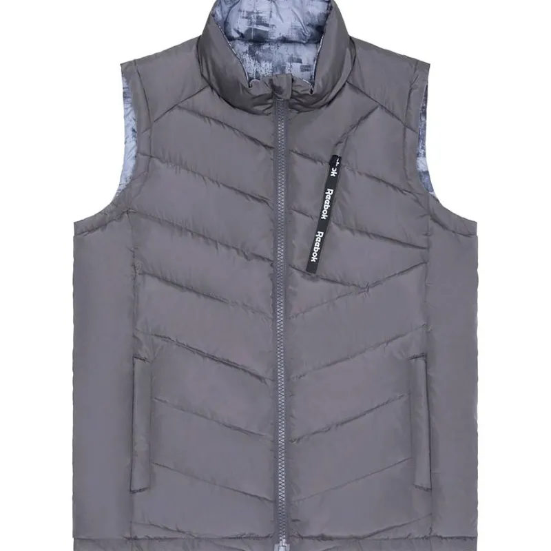 Hombre Reebok Chaquetas^Puffer Vest 2-in-1 Hombre Reversible Chaleco RBO15720-Carbón vegetal