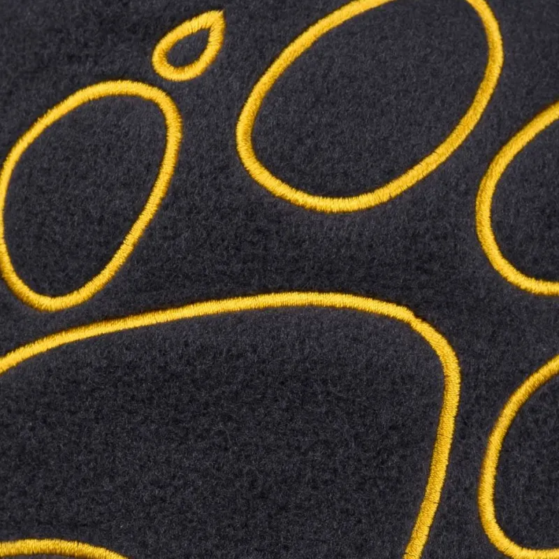 - Una gran y colorida huella de pata como motivo en la parte delantera.