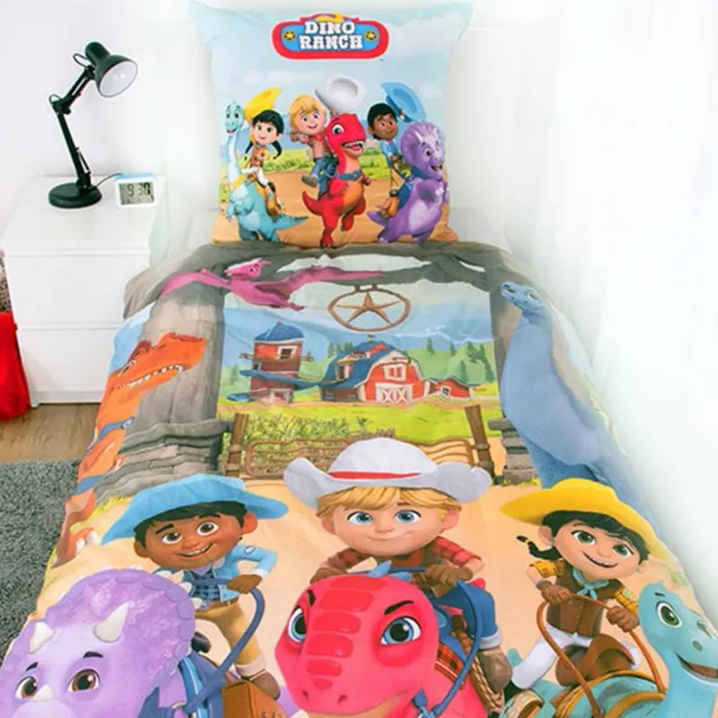 - Ropa de cama colorida Dino Ranch – Conjunto para Niño – ideal para pequeños fanáticos de los dinosaurios y las aventuras