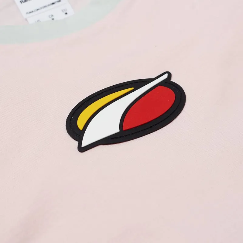 - Logo de la marca como parche en el dobladillo de la manga izquierda