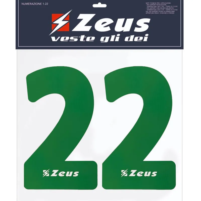 Zeus Números termoadhesivos 1-22 23cm verde senior